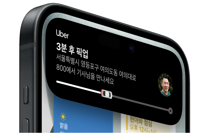 이제는 아이폰 15 기본 라인업에서도 다이나믹 아일랜드로 실시간 현황 정보를 간편하고 빠르게 볼 수 있게되었습니다.