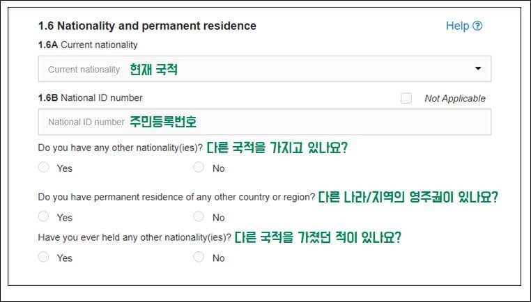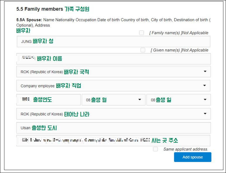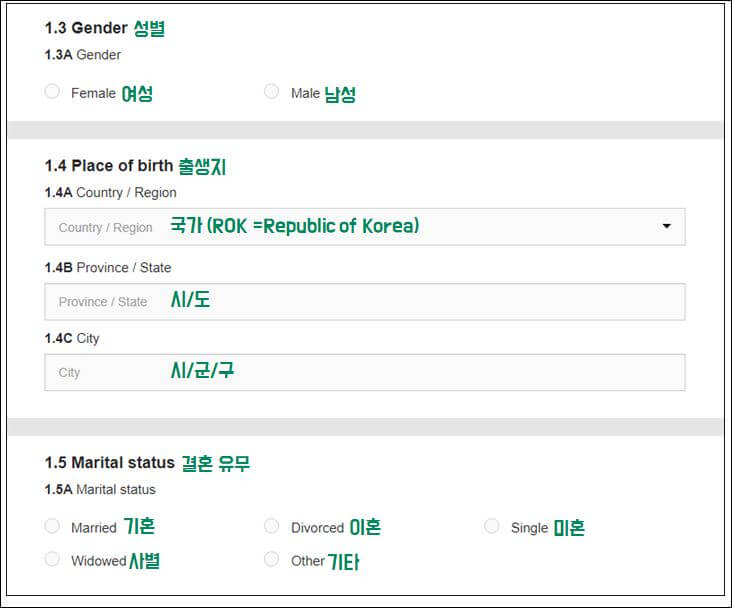 배우자의 성함, 국적, 직업, 태어난 날, 출생 도시까지 적어야 하니 아래 참고하세요.