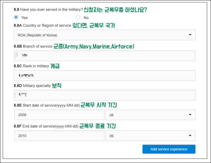 하지만 질문 중에 군 복무 관련 질문이 있는데 여기에 해당되시는 분들은 추가로 더 작성하셔야 합니다.