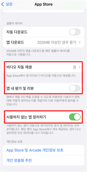 [설정] → [App Store] → [비디오 자동 재생 끄기]