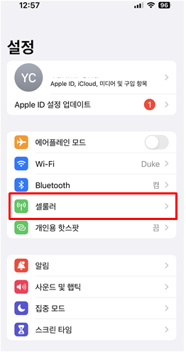 아래 아이폰 설정화면에서 [셀룰러] → [음성 및 데이터] → [5G 자동] 으로 설정해 둡니다.