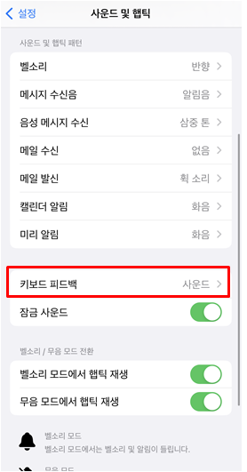 [설정] → [사운드 및 햅틱] → [키보드 피드백/햅틱 끔]